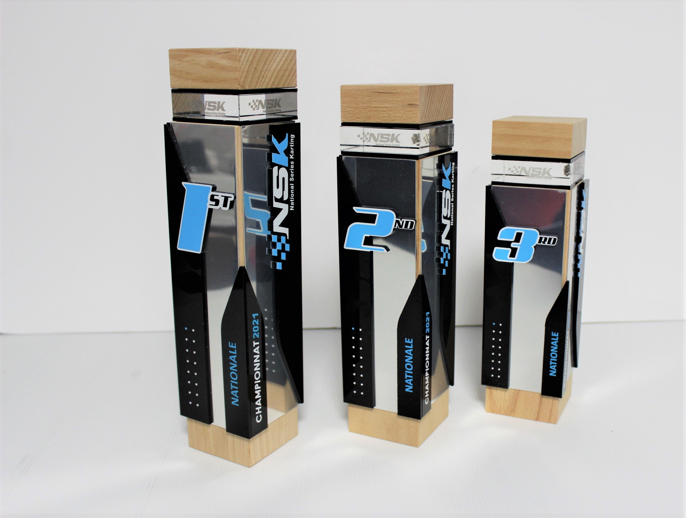 are reused for trophies in motor sports, which would otherwise be destined for landfill.